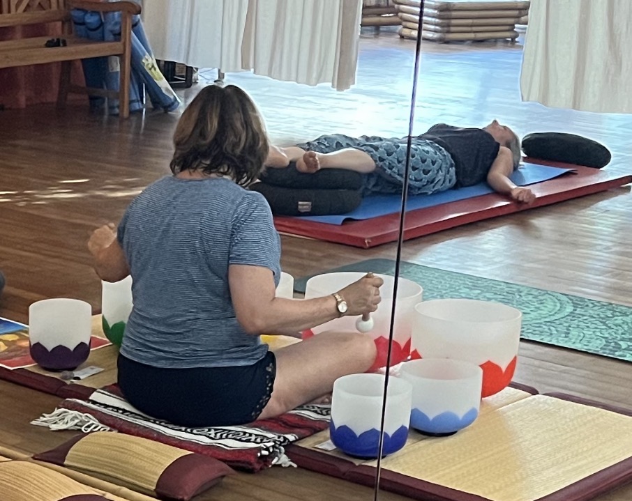 Pour terminer, allongés confortablement sur nos tapis, je ferai chanter mes 7 bols sonores, chacun associé aux 7 chakras, pour vous guider vers une détente profonde et apaisante.