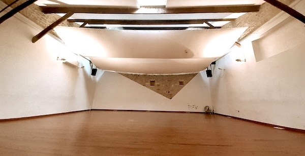 C’est un cube de 10 mètres de côté, lumineux, avec 9 mètres sous plafond, un plancher flottant, une acoustique douce et un équipement sonore adapté.